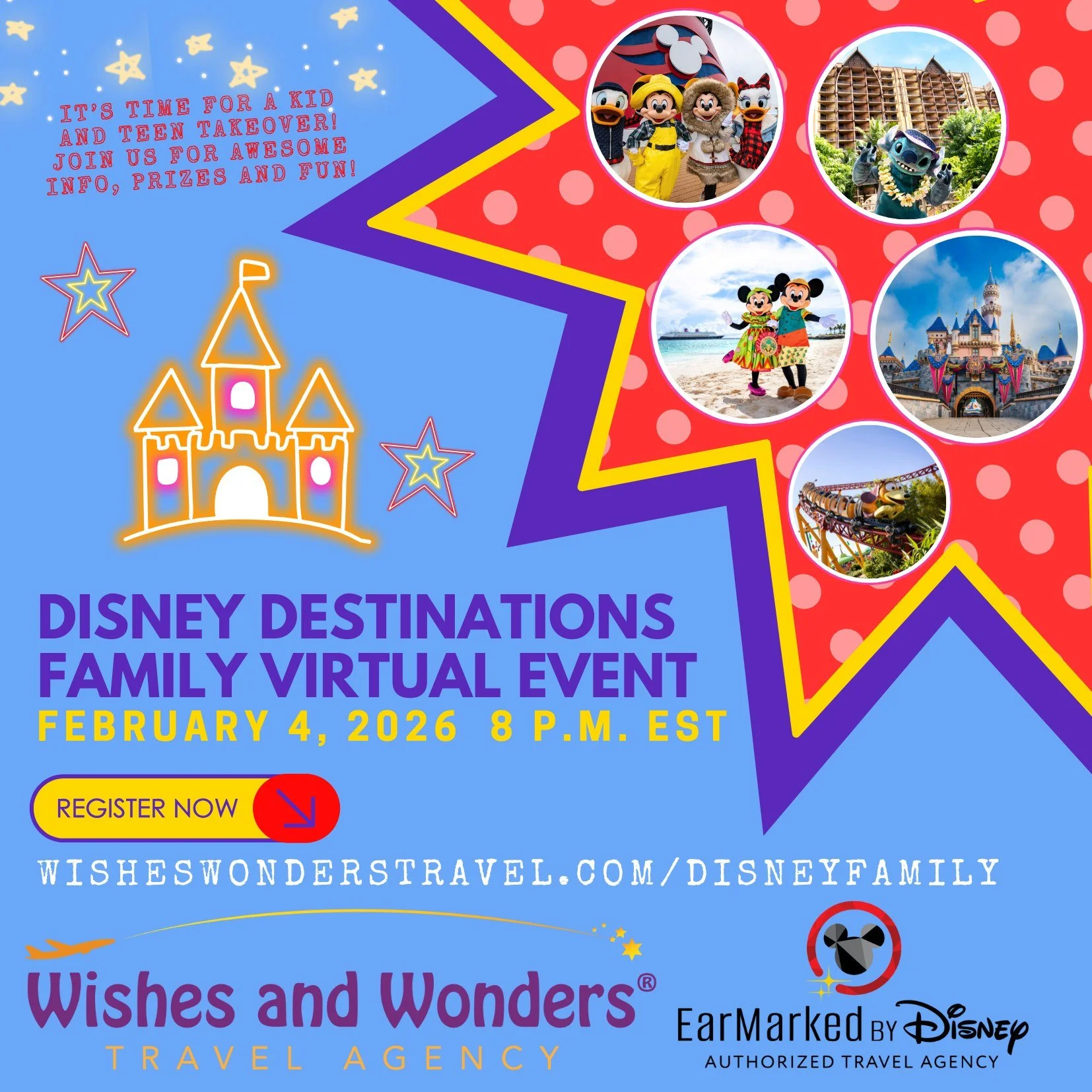 You are invited to join us for an exclusive Wishes and Wonders Travel Disney Destinations Family Virtual Event from